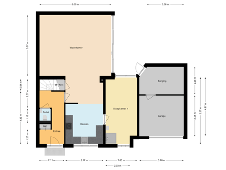 - 30 m² (6,00 meter diep en 5,00 meter breed)