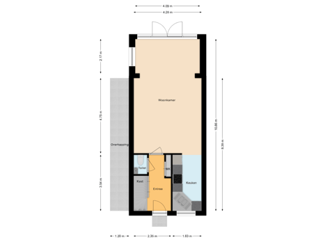 - 78 m² (12,00 meter diep en 6,50 meter breed)