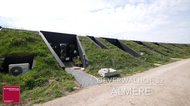 Deze volledig gelijkvloerse woning van circa 83 m² (bouwjaar 2021, inhoud 361 m³) is een eigentijds, uitgesproken duurzaam ontwerp. Karakteristiek is de aarden taludconstructie met begroeid dak, waarmee de woning vrijwel oplost in het landschap. Bovenop liggen 18 zonnepanelen met een totaal vermogen van 6.264 Wp — goed voor een aandeel hernieuwbare energie van maar liefst 120% en het hoogst haalbare energielabel A++++.