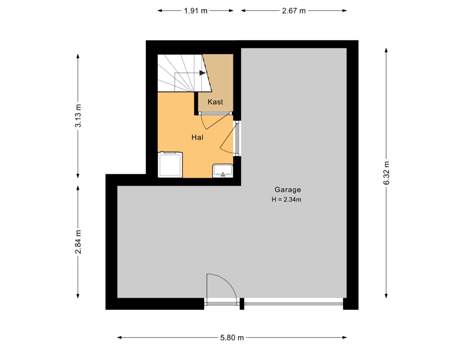 Op de benedenverdieping bevindt zich de geïsoleerde drive-in garage, met een totale souterrainoppervlakte van circa 32,8 m². Deze ruimte is ideaal voor het stallen van een auto, maar door de isolatie en de royale afmetingen tevens zeer geschikt als studio, praktijkruimte of kantoor aan huis. Aangrenzend tref je de wasruimte, praktisch gesitueerd op de laagste verdieping van de woning.