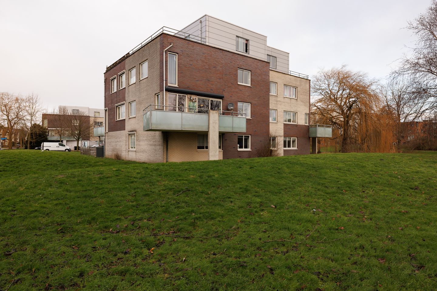Via de overloop op de eerste verdieping heeft u toegang tot de woonkamer. De royale woonkamer is bijzonder ruim van opzet en biedt een comfortabele leefruimte voor het gehele gezin. Dankzij de grote schuifpui, die de woonkamer verbindt met het ruime dakterras, wordt er optimaal gebruik gemaakt van de lichtinval en het buitenleven. Het dakterras zelf is van aanzienlijk formaat en biedt uitzicht over het omliggende groen en de gracht. De keuken is uitgerust met diverse moderne apparatuur, waaronder een oven, een magnetron, een kookplaat met bijbehorende afzuigkap, een vrijstaande koelkast met vriezer en een vaatwasser. Op de gehele verdieping ligt een nette laminaatvloer.