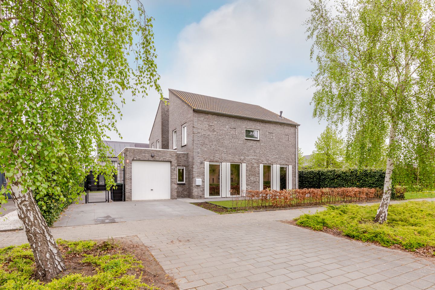 Parkeren kan eenvoudig op eigen terrein, met ruimte voor twee auto’s direct voor de woning.
