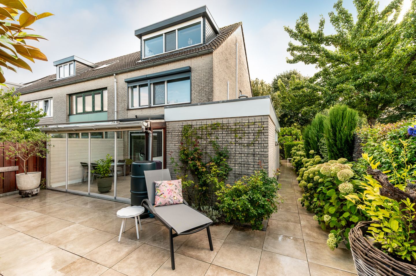 - veel verschillende zonnige plekken in de gehele tuin, de achtertuin is gelegen op het Zuidwesten en is fraai aangelegd met veelal groenblijvende planten met In-Lite tuinverlichting, afsluitbare serre (incl. elektrisch zonnescherm en schuifpui), sierbestrating, vrijstaande houten berging, een ruime overkapping, 2x een achterom, schuttingen en borders (met o.a. een vijgen- peren- en appelboom en een ruim honderd jaar oude olijfboom.