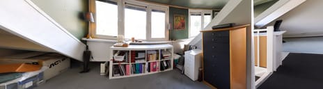 De zolder biedt nog een volwaardige verdieping. Deze verdieping is verrassend ruim en licht, mede door de enorme dakkapel met kunststof draai-kiepramen. Deze ruimte is nu één geheel, maar je kunt deze ook goed opdelen in bijvoorbeeld twee extra slaapkamers. Verder vind je hier de cv-installatie, mechanische ventilatie en de omvormer van de zonnepanelen.