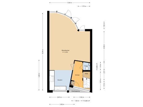 - 82 m² (14,60 meter diep en 5,60 meter breed)