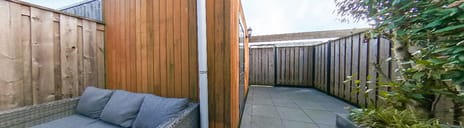 De achtertuin is in 2017 opnieuw aangelegd en is onderhoudsvriendelijk en op allerlei manieren in te delen. De tuin ligt op het zuidoosten, waardoor je hier al vroeg op de dag van de zon geniet. Het grote terras biedt plek genoeg voor een loungeset én een eettafel. Door de ligging aan een afgesloten binnenterrein, met de parkeerplaatsen direct achter de tuin, heb je veel privacy. Het binnenterrein en de buitenkant van de woningen wordt samen met de buren onderhouden, waardoor het er altijd verzorgd uitziet.