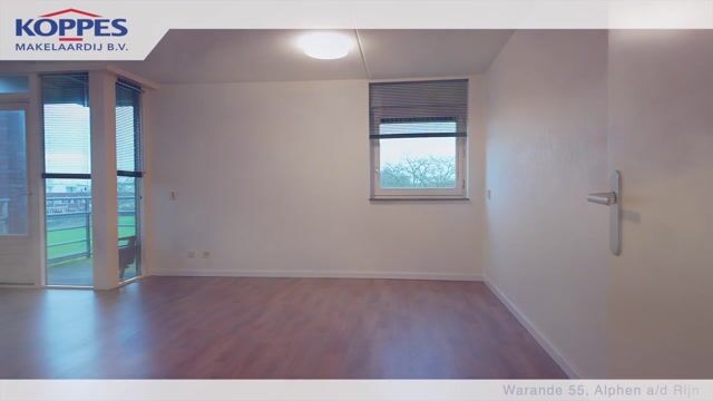 De woonkamer beschikt over grote raampartijen die zorgen voor een prettige lichtinval met een vrij uitzicht. Vanuit de woonkamer heeft u directe toegang tot het balkon, wat zorgt voor een fijne verbinding tussen binnen en buiten. De ruimte is makkelijk in te delen met een comfortabele zithoek en een eettafel. De wanden en vloer zijn neutraal afgewerkt, waardoor je het geheel eenvoudig naar eigen smaak kunt inrichten.