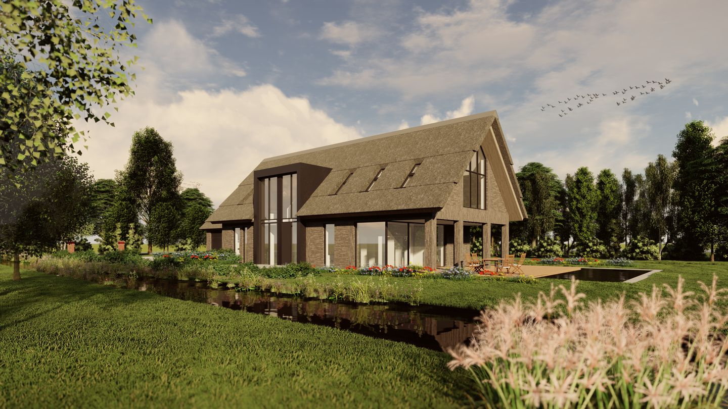 De omgeving bestaat uit een combinatie van grotere en kleinere woningen, boerderijen en schuren. De woning dient qua volume-opbouw en materialisatie aan te sluiten bij de omgeving. Daarnaast is gezocht naar een architectuurstijl die past bij het weidse polderlandschap, met daarbij een enigszins chique uitstraling; anders gezegd landelijk/modern. De supervisor zorgt ervoor dat het ontwerp binnen het beeldkwaliteitsplan valt. Dit gebeurt in overleg met u en uw architect.