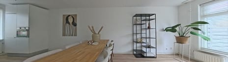 De woonkamer heeft een oppervlakte van ca. 26 m². Dankzij de grote raampartijen is er voldoende lichtinval. Via de woonkamer bereikt u de open keuken van de woning. Er is ruimte voor het creëren van een ruime zit- en eethoek. De raampartij biedt voldoende natuurlijke lichtinval. Via de deur heeft u toegang tot de achtertuin, waardoor binnen en buiten met elkaar worden verbonden.