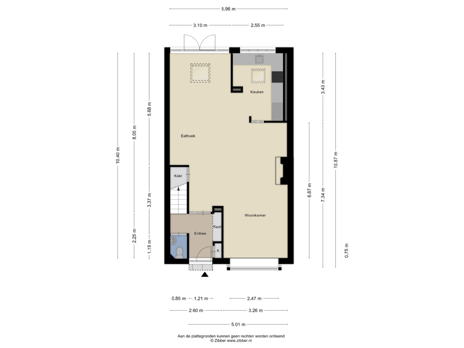 - 39 m² (7,00 meter diep en 5,50 meter breed)