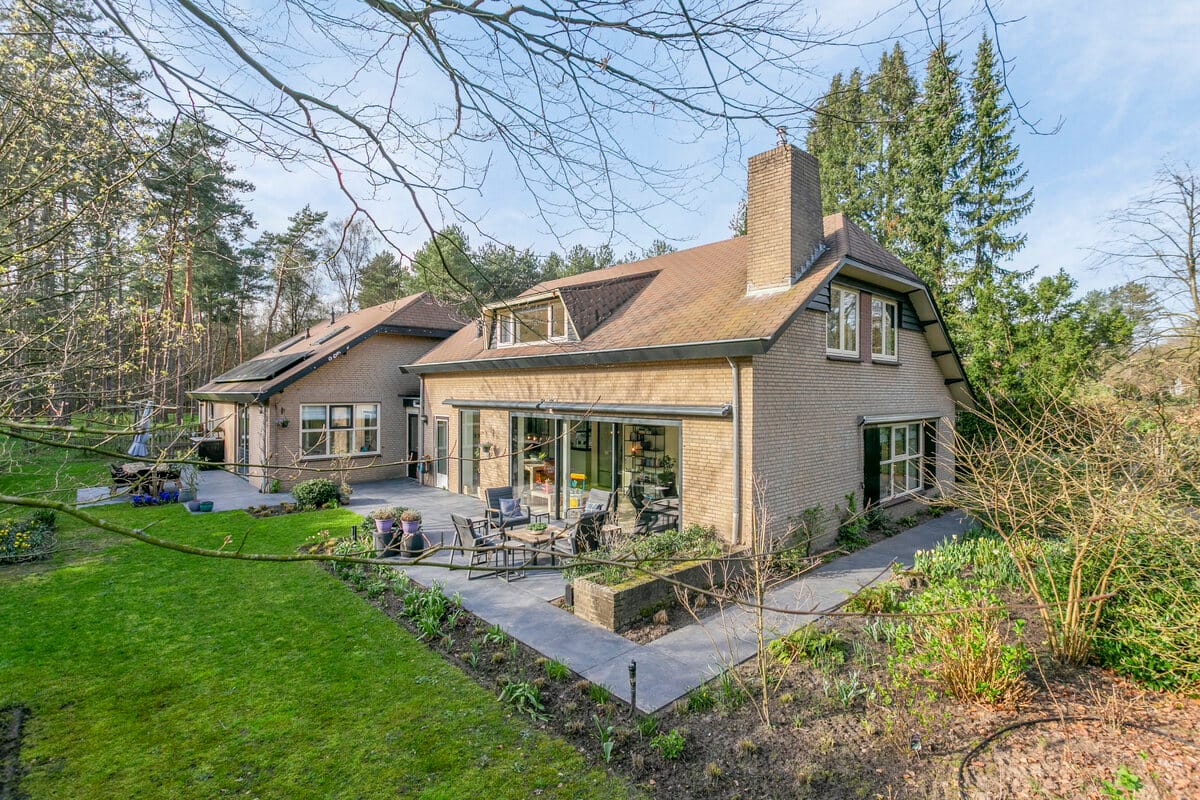 De woning ligt op een ruim perceel en zal je aangenaam verrassen zodra je de oprit oprijdt. Hier is voldoende parkeergelegenheid voor meerdere auto’s. Naast de oprit is er een extra verharde parkeerplaats. Rondom de woning ligt een lommerrijke tuin met veel volwassen bomen en planten. Direct om de woning ligt er een gazon als ook een terras, zodat je op ieder moment van de dag van de tuin kunt genieten. In dit gedeelte zijn een aantal sproeiers aangebracht, zodat de tuin ook in een wat drogere periode mooi groen kan blijven. Boven het terras hangen twee elektrisch bedienbare zonneschermen. Het terras kan verbonden worden met de woonkamer door de grote glazen pui te openen.