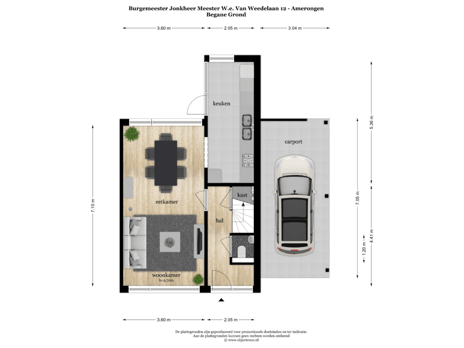 Parkeren kan op eigen terrein onder de carport naast de woning.