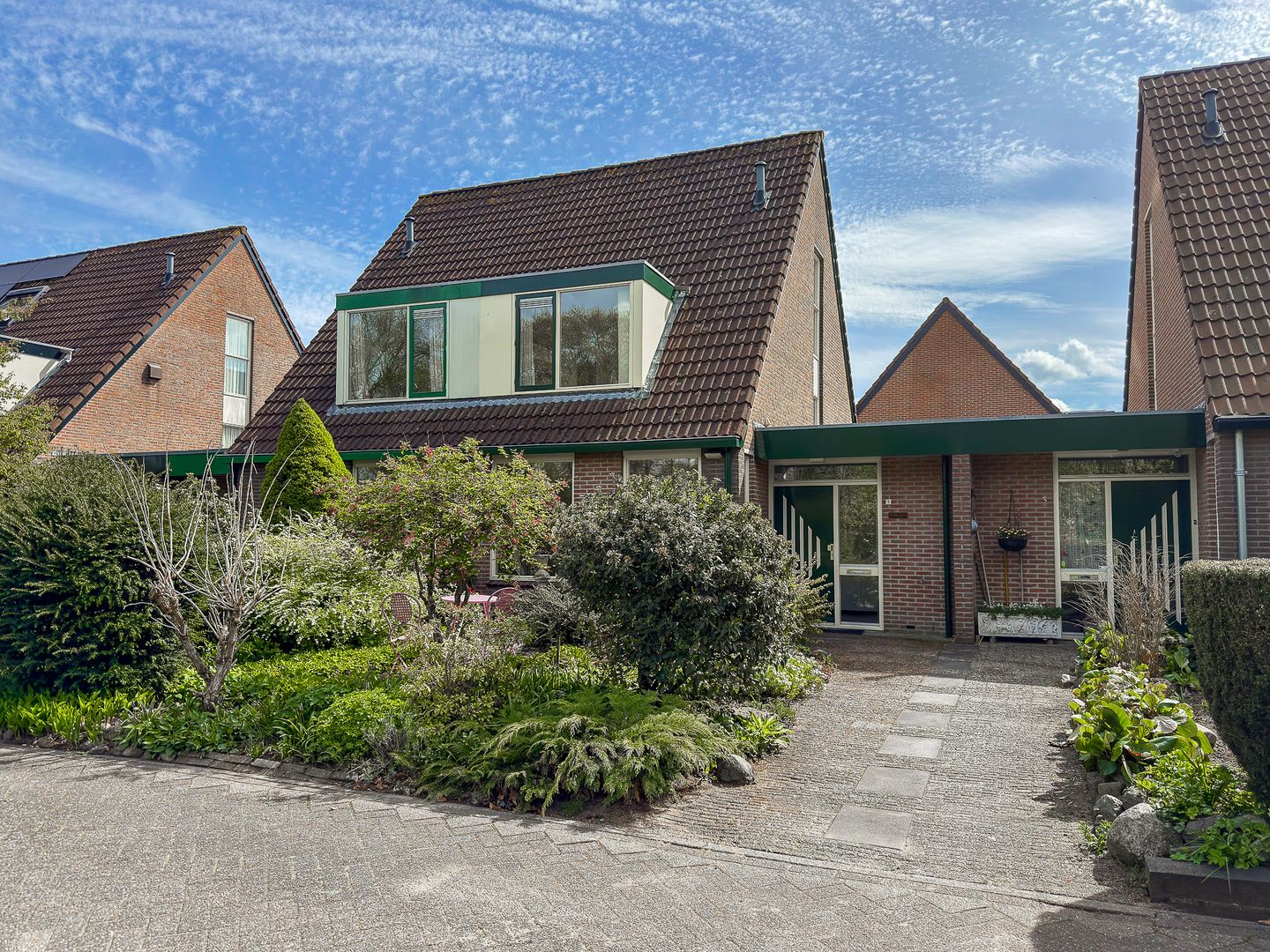 Ook aan de voorzijde is de woning verzorgd aangelegd. De voortuin heeft een groene uitstraling en vormt samen met het vrije uitzicht over het groen een prettige en rustige entree. Daarmee begint het gevoel van ruimte en privacy eigenlijk al zodra je aankomt.
