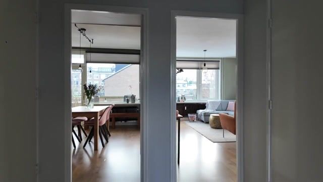 Het appartement is gelegen op de hoek van het complex. Wanneer je binnenstapt in de woonkamer vallen direct de vele ramen op, die zorgen voor volop daglicht en een ruimtelijk gevoel. Hier creëer je een gezellige zithoek waar je na een lange werkdag kunt ontspannen of met vrienden gezellig kunt borrelen. De kamer, grenzend aan de woonkamer, is de ideale plek voor een ruime eettafel. Vanuit de woon- en eetkamer heb je toegang tot het balkon, waar je een groot deel van de dag heerlijk van de zon kunt genieten.