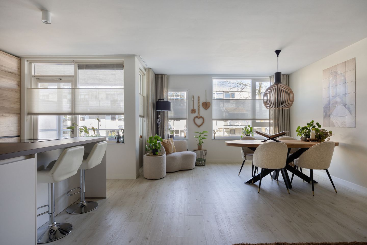 Lichte woonkamer met grote raampartijen