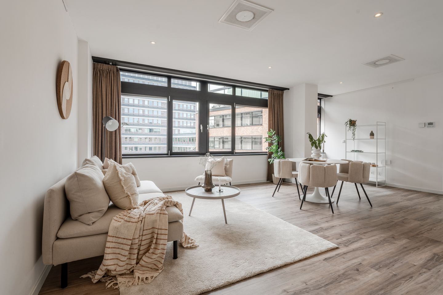 Het gehele appartement is voorzien van een moderne pvc-vloer, strakke wand- en plafondafwerking en LED-inbouwspots.