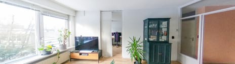 De woonkamer van circa 21 m² is bijzonder licht dankzij de grote raampartijen op het zuidwesten. De woonkamer staat op een gezellige manier in verbinding met de naastgelegen kamer, waar voorheen openslaande deuren waren. Deze kamer (circa 11 m²) wordt momenteel gebruikt als hobby- en werkkamer en biedt directe toegang tot het zonnige balkon met vrij uitzicht. De ruimte is echter ook uitstekend geschikt als derde slaapkamer.