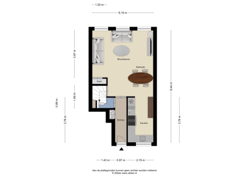 - 27 m² (5,00 meter diep en 5,33 meter breed)