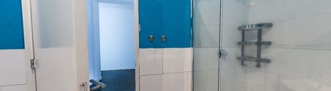 - 2 dubbele wastafels, inloopdouche, 2 ligbaden, 3 toiletten, vloerverwarming, wastafelmeubel, 2 douches, en wastafel