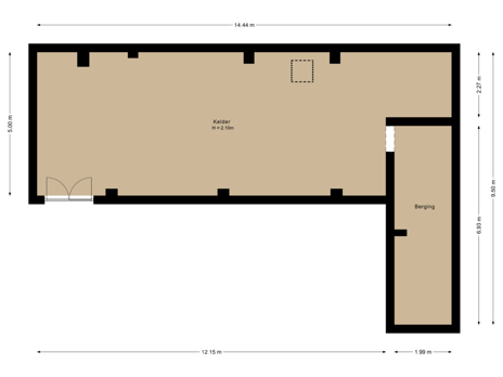 Onder de woning bevindt zich een kelder van 81 m² met een plafondhoogte van 2,10 meter. Geschikt als atelier, fitnessruimte, hobbyruimte of wijnkelder.