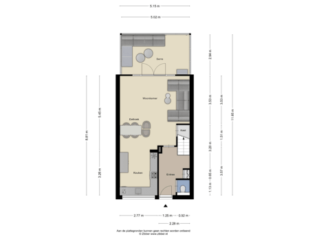 - 54 m² (10,14 meter diep en 5,40 meter breed)
