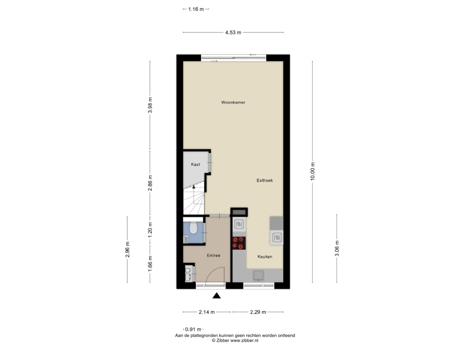 - 43 m² (9,00 meter diep en 4,80 meter breed)