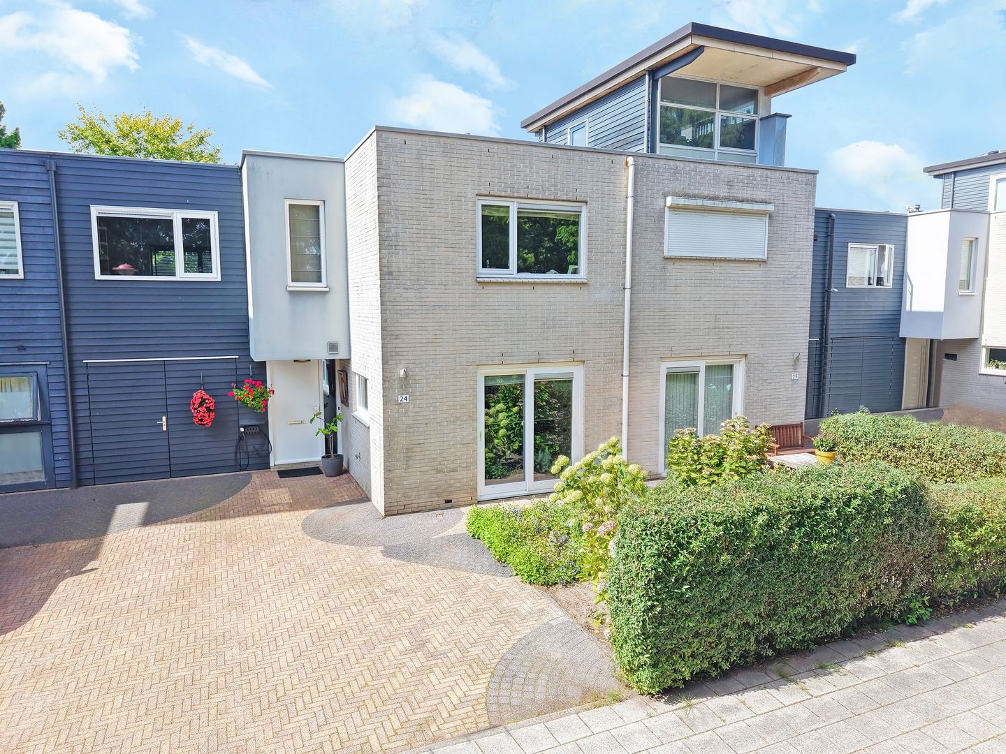Buiten word je getrakteerd op een diepe, onderhoudsvriendelijke achtertuin met een gunstige ligging op het westen. Hier geniet je volop van de middag- en avondzon, in alle rust en met veel privacy. Aan de voorkant van de woning vind je een ruime oprit met plek voor twee auto’s én toegang tot de zeer royale garage.