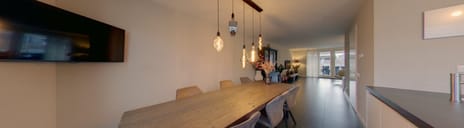 De keuken bevindt zich aan de voorzijde en ligt over de volle breedte van de woning. Hierdoor meet de keuken maar liefst 20m² en is hiermee een echte leefkeuken, waar koken en gezellig tafelen moeiteloos samengaan. De openslaande tuindeuren in de voorgevel zorgen voor veel daglicht en een fijne verbinding met de voortuin.