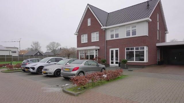De entree van de woning bevindt zich in de zijgevel. Via de bestrate oprit bereik je gemakkelijk de voordeur onder de carport, waardoor je altijd droog naar binnen stapt.