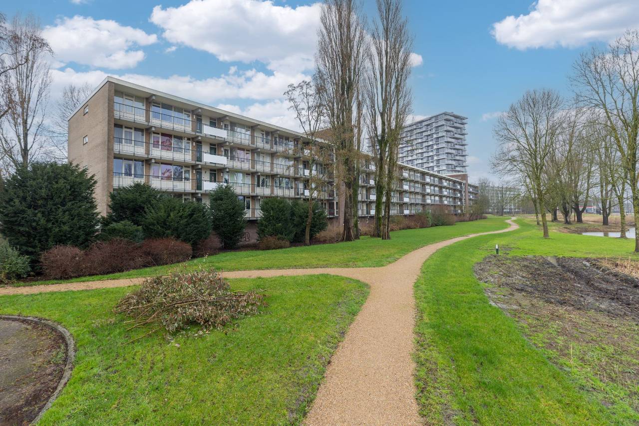 Very light 3 bedroom apartment (85 M2), with sunny balcony on the South-West, on a beautiful location in the much loved area ‘’Elsrijk’’. Well maintained and very light property, with easy access to the "Binnenhof" shopping mall, the busstation, tram line 5 and 25 towards the Center or South area of Amsterdam. On a 10 minute bike into the Amsterdamse Bos (large park, with hike and bike trails, lots of ponds and water ways). The living room of the apartment has access to the 9 M2 sunny balcony, with remote controlled sunscreen. There is a lot of built in closets and cupboard space. The kitchen has built in appliances (dishwasher, oven, stove, fridge, exhaust fan) and a lot of cupboard space. All windows and doors have double glazing and together with the heating system, the usage costs are kept low as far as possible. The 3 bedrooms are all well sized and the master bedroom has access to the balcony as well. The bathroom has a shower, towel radiator, connections for washer and dryer and a separate toilet next to it.