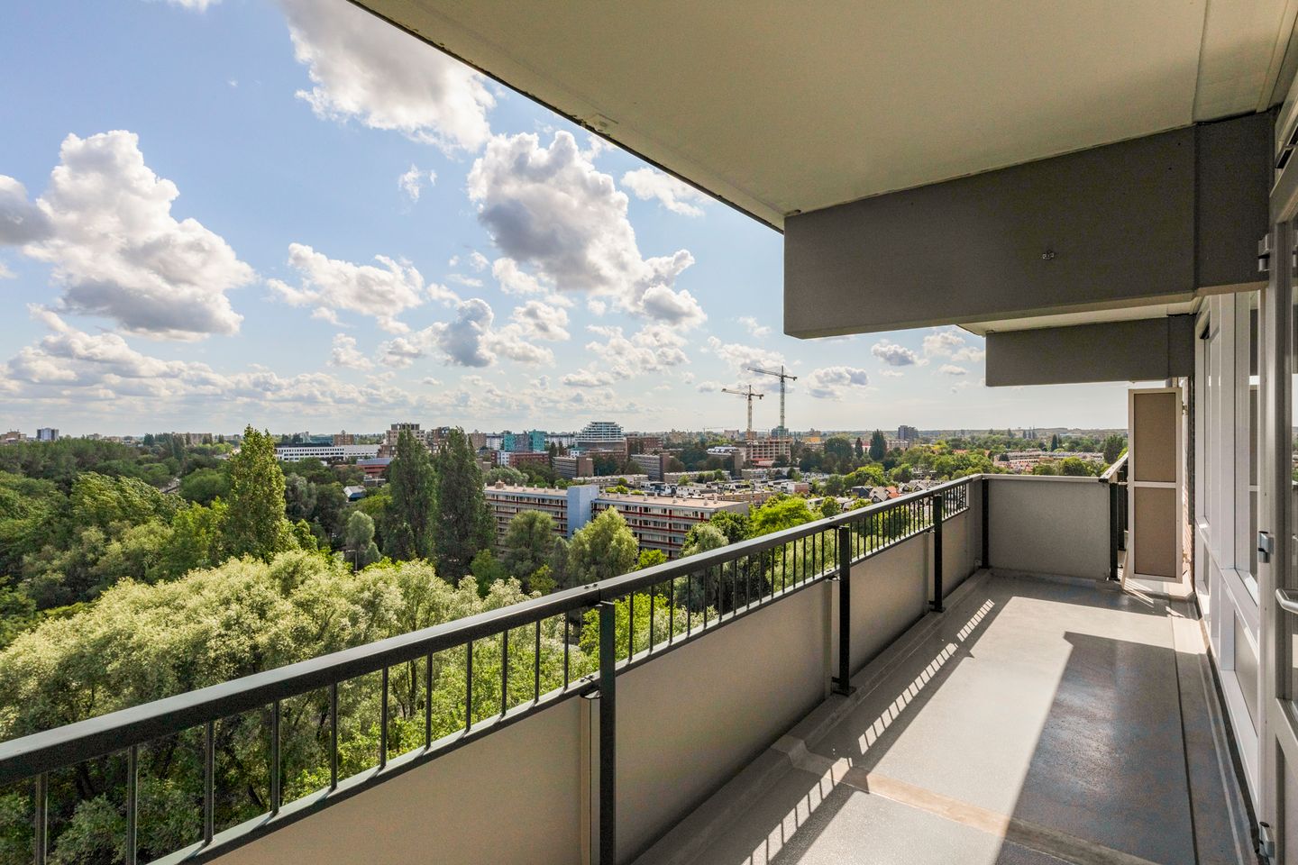 Twaalfde verdieping: toegang tot woning, hal met toegang tot een bergkast en alle vertrekken. De woonkamer is ruim en licht met prachtige vergezichten. De open keuken is voorzien van diverse apparatuur en vanuit de slaapkamer heb je toegang tot het ruime balkon op het zuiden van maar liefst 15 m2. De badkamer is voorzien van een ligbad met douche, wastafel en wasmachineaansluiting en het toilet met fonteintje bevindt zich separaat in de hal.