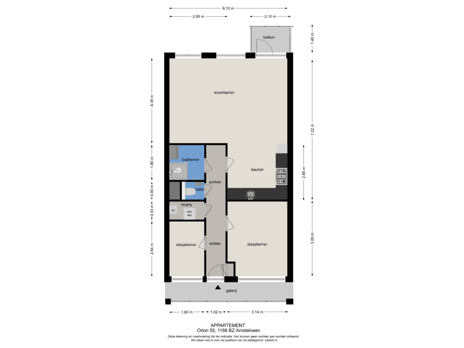 U betreedt het complex via de verzorgde centrale hal. Met de lift of trap bereikt u de tweede verdieping, waar het appartement is gelegen. Bij binnenkomst komt u in de gang die toegang biedt tot alle vertrekken. De ruime woonkamer is dankzij de grote raampartijen aangenaam licht en geeft toegang tot het zonnige balkon op het westen.