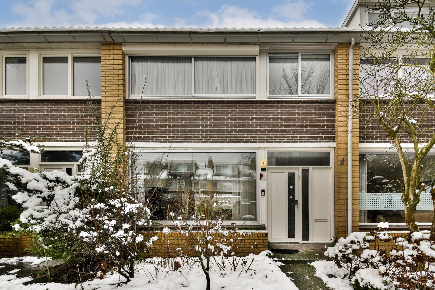 The home is accessed via the front garden. Entrance, hallway with space for your coats; along the hall the downstairs toilet. Pleasant living room with parquet flooring, a (gas) fireplace and a sitting room. A striking feature in this room is the special brick wall of ‘odd bricks’. The dining area at the rear is next to the open-plan kitchen. The sunny garden is accessed via the sliding doors in the living room or the sliding door in kitchen. The west-facing garden is tiled, has a rear entrance and a handy shed.
