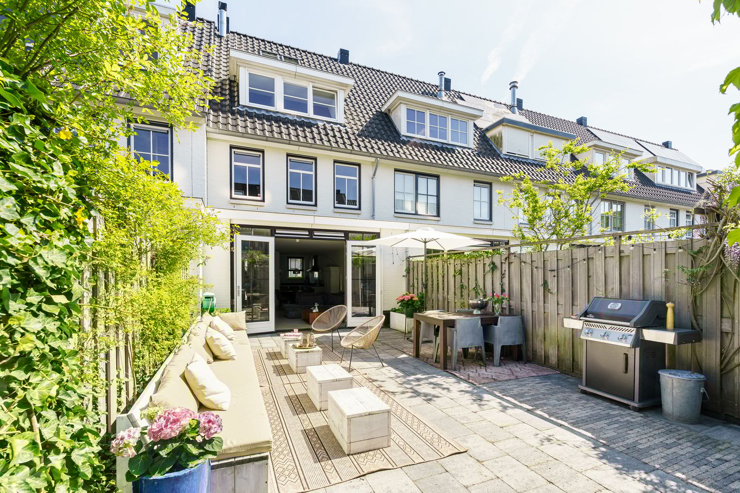 De achtertuin ligt op het noordwesten en is bereikbaar via de openslaande deuren in de woonkamer. Door de ligging geniet je hier van de middag- en avondzon, perfect voor zomerse diners of borrels. De tuin is diep, biedt volop privacy en beschikt over een vrijstaande berging en ook toegankelijk via een aparte achterom.