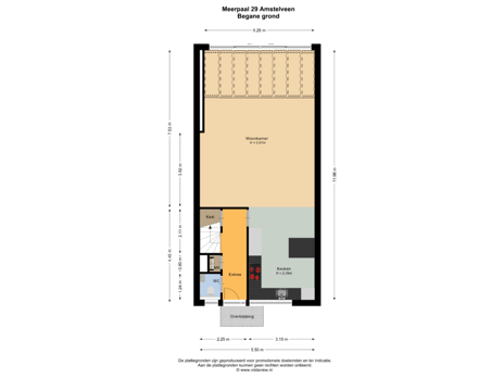 - 44 m² (7,21 meter diep en 6,11 meter breed)