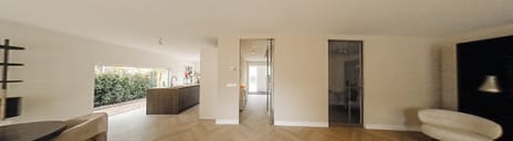 This home has been renovated with great care and a keen sense of style, using calm, modern, and timeless materials. The soft color tones, sleek plasterwork, herringbone-patterned PVC flooring, and underfloor heating on the ground floor create a warm and elegant atmosphere. Large windows bring in abundant natural light, making the living spaces feel even more spacious.