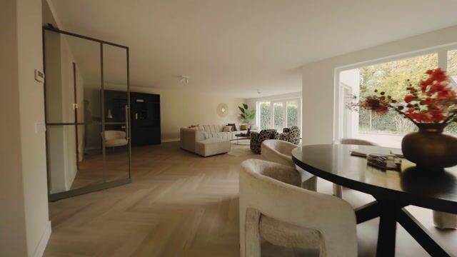 This home has been renovated with great care and a keen sense of style, using calm, modern, and timeless materials. The soft color tones, sleek plasterwork, herringbone-patterned PVC flooring, and underfloor heating on the ground floor create a warm and elegant atmosphere. Large windows bring in abundant natural light, making the living spaces feel even more spacious.