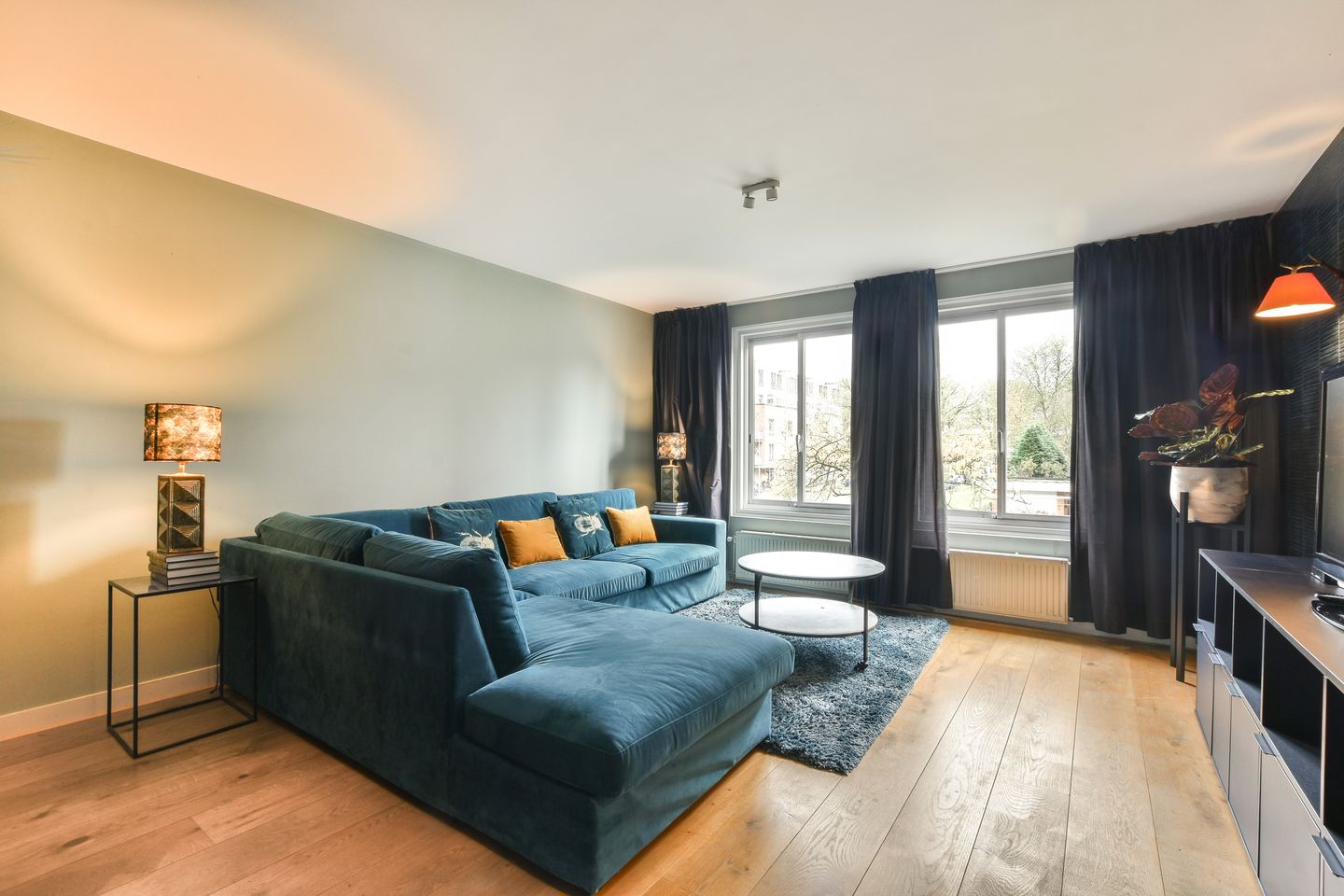 The living room is spacious and a large seating area has been created here. The large windows create beautiful light in the house. The kitchen is adjacent to the living room, which is equipped with all amenities, including an oven, sink, 4-burner hob with extractor hood, fridge/freezer, dishwasher, and plenty of storage space. There is a bar in the kitchen where you can start the day with a cup of coffee, ideal! Through the kitchen you reach the balcony, which is located on the north, so after work, you can enjoy the rays of sunshine.