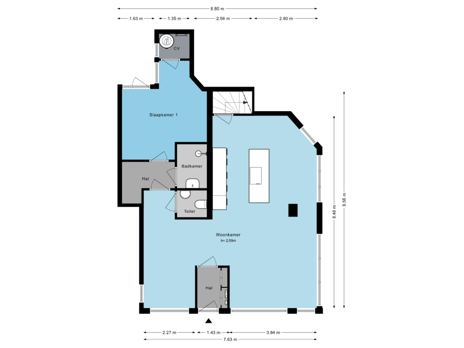 De hal verbindt het woongedeelte met de ruim bemeten slaapkamer en badkamer. De luxe badkamer is voorzien van een regendouche, wastafel en spiegelkast. De slaapkamer is gelegen aan de achterzijde van het pand en geeft tevens toegang tot de charmante tuin, welke is gelegen op het zuidoosten. Deze etage beschikt tevens over een separaat toilet.