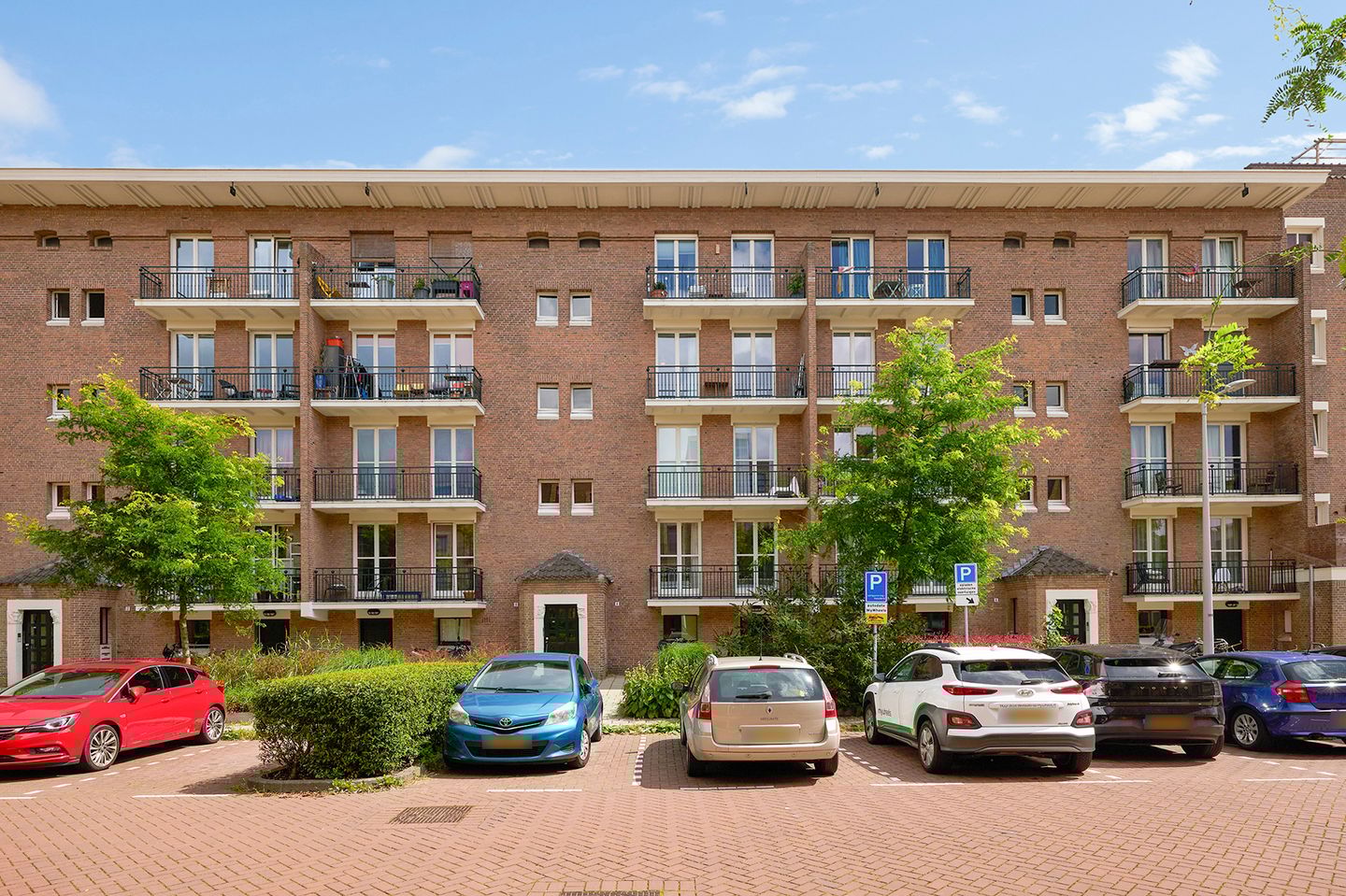 Eerste verdieping: Hal met meterkast, garderobe, en aan de voorzijde een kamer in gebruik als kinderkamer met toegang tot het balkon aan de voorzijde. In het midden bevindt zich een apart toilet en de badkamer, voorzien van douche, wastafel, ligbad en aansluiting voor wasmachine en droger. De woonkamer ligt aan de achterzijde en is verbonden met de halfopen keuken. Het balkon aan de achterzijde is bereikbaar via zowel de keuken als de woonkamer, waar je in de ochtendzon kunt ontbijten en tot in de middag van de zon kunt genieten. Vanuit de woonkamer is de master bedroom bereikbaar, voorzien van een inbouwkast en toegang tot het balkon op het westen, waar je van de avondzon geniet. Naast de balkons is er ook een gemeenschappelijke binnentuin tussen de twee gebouwen. Deze is vrij toegankelijk voor bewoners en biedt verschillende picknicktafels, omringd door groen en zelfs een klein kapelletje. Kortom, alles wat je nodig hebt!