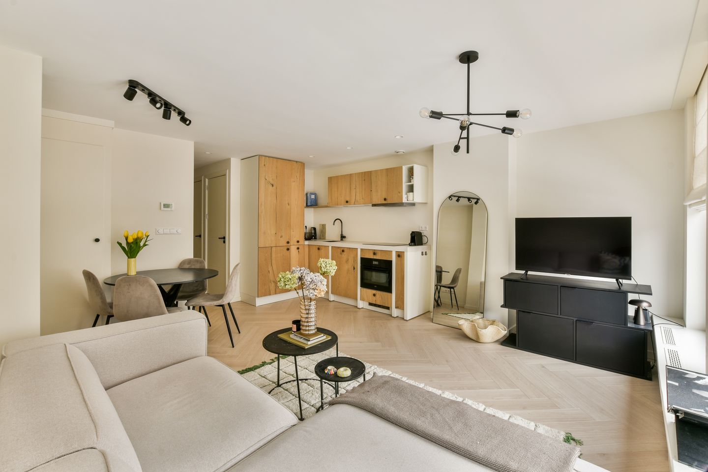 Completely relax in the vibrant Albert Cuypstraat?! That’s definitely possible with this property. The home was fully renovated at the end of 2021 and features a stunning Scandichique Bruynzeel kitchen, a light herringbone laminate floor, as well as dimmable recessed lighting throughout the home. The luxury bathroom includes a double sink and wood-look tiles, providing a true spa experience.