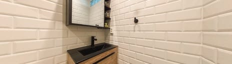 Through the hall you also reach the spacious bedroom, which has more than enough space for a double bed and a closet. The bathroom is equipped with a shower, sink.