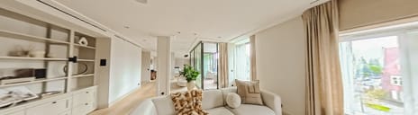The home features a grand, 22-metre-wide living space with multiple layout options, a bespoke kitchen with utility room, two generous bedrooms (option for a third), two luxurious bathrooms and a large walk-in closet. Every detail is finished with precision, using premium materials and advanced installations such as underfloor heating, ceiling cooling, and home automation. The loggia extends the living space outward — a sheltered, sunlit area that enjoys afternoon and evening sun. In the basement, two extra-wide parking spaces and a large private storage room are directly connected to the apartment via the lift. The parking garage is spacious and well laid out, without a car lift, and easily accessible.