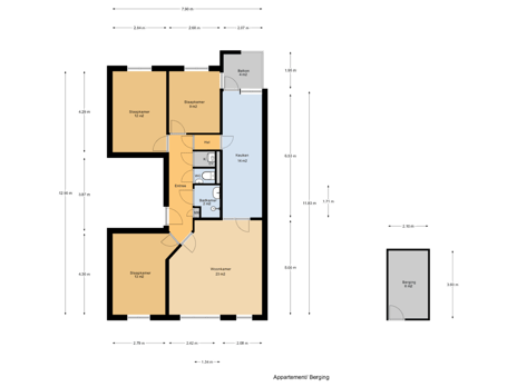 Het appartement beschikt over drie slaapkamers. De eerste slaapkamer, gesitueerd aan de voorzijde, heeft grote ramen die zorgen voor veel lichtinval en zicht op de omgeving. De tweede kamer ligt aan de achterzijde van de woning. De derde kamer grenst aan de keukenruimte en biedt verschillende gebruiksmogelijkheden zoals een kantoor, hobbykamer of kinderkamer.