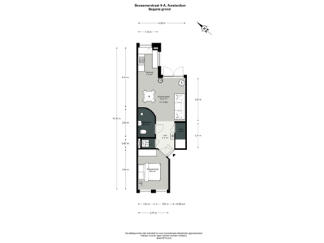 - 49 m² (10,65 meter diep en 4,60 meter breed)
