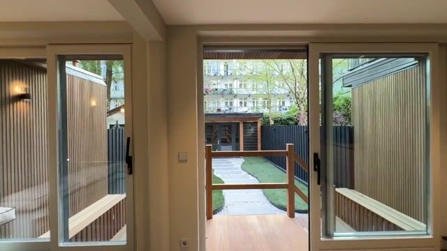 This multi-level home is intelligently divided across two floors to optimize living and sleeping areas. The upper level features an open-plan kitchen and living space, complete with a cozy sitting area near the kitchen. The kitchen itself is outfitted with premium appliances and includes a built-in wine fridge, perfect for entertaining. The lower level houses three bedrooms, each fitted with air conditioning, ensuring year-round comfort, also on this level is a spacious washroom and you'll also find the heat recovery ventilation. There is ample storage space available on this level as well. At the rear of the property lies an architecturally landscaped garden. It includes a spacious garden house including toilet, with a connection for a kitchen, shower, and sink. The garden plot measures approx. 68m², and the garden house itself is approx. 28 m².