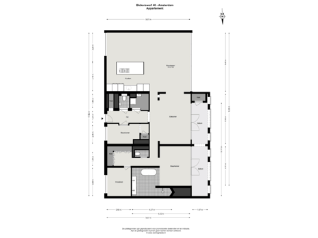De woning is volledig gelijkvloers en te bereiken per lift. De entree opent zich naar de eetkamer met op maat gemaakte eiken inbouw kast, welke speciaal gemaakt is voor kunstobjecten en ook voorzien is van een CallFire gelhaard. Deze ruimte grenst aan de open keuken in de royale woonkamer. De eetkamer geeft toegang tot het brede, overdekte balkon met avondzon. Vanuit de woonkamer is er prachtig zicht richting het water en het Westerdok. Op de vloer ligt een donkerbruine eikenhouten vloer, welke in visgraat gelegd is.
