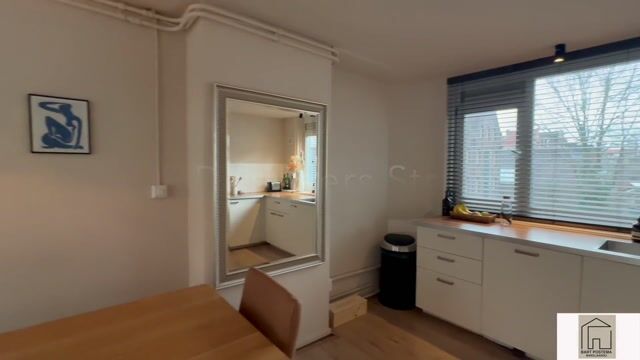 Via de gemeenschappelijke entree en het trappenhuis bereik je de tweede verdieping, waar de woning is gelegen. Bij binnenkomst stap je direct de woonkamer binnen, met een open keuken die deels is afgescheiden door een muurtje. Deze indeling zorgt voor een prettige scheiding tussen koken en wonen, waarbij het muurtje desgewenst kan worden doorgetrokken om een extra slaapkamer of werkkamer te creëren.