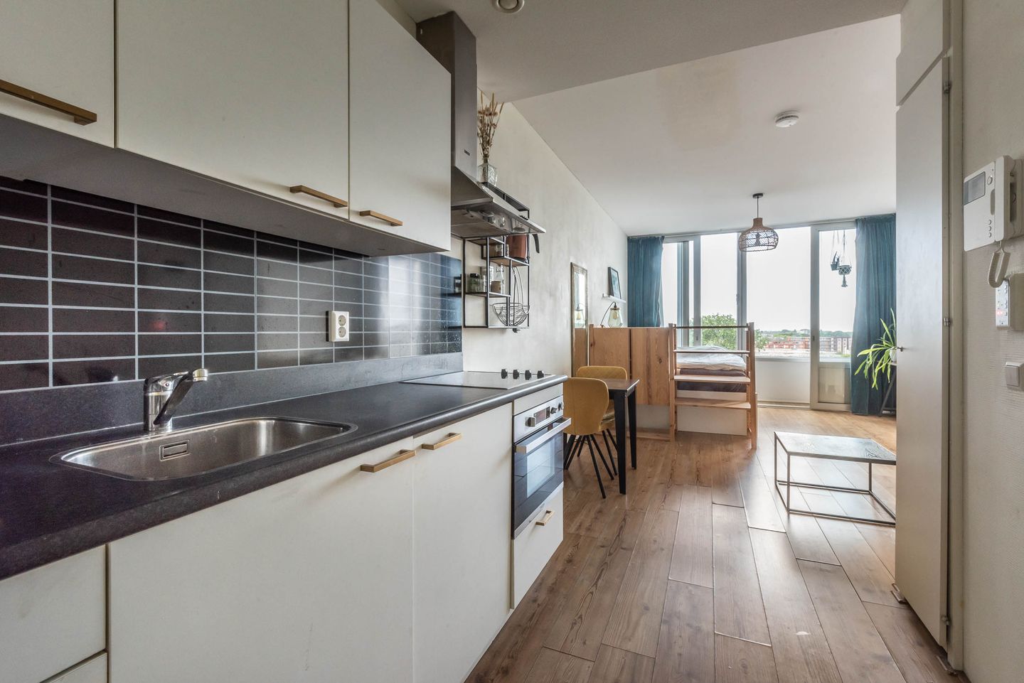 De woon- slaapkamer heeft voldoende ruimte voor een tweepersoonsbed, zit- en eethoek en kastruimte. De nis bij de raampartijen is voorzien van extra berging en zorgt er voor dat je geen geluidsoverlast hebt. Door de gehele woning ligt een laminaatvloer met onder andere vloerverwarming- en koeling.
