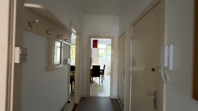 Via the shared entrance, you reach the apartment on the first floor. You enter into a hallway that provides access to all rooms. There are also two built-in closets in the hallway, practical and space-saving.